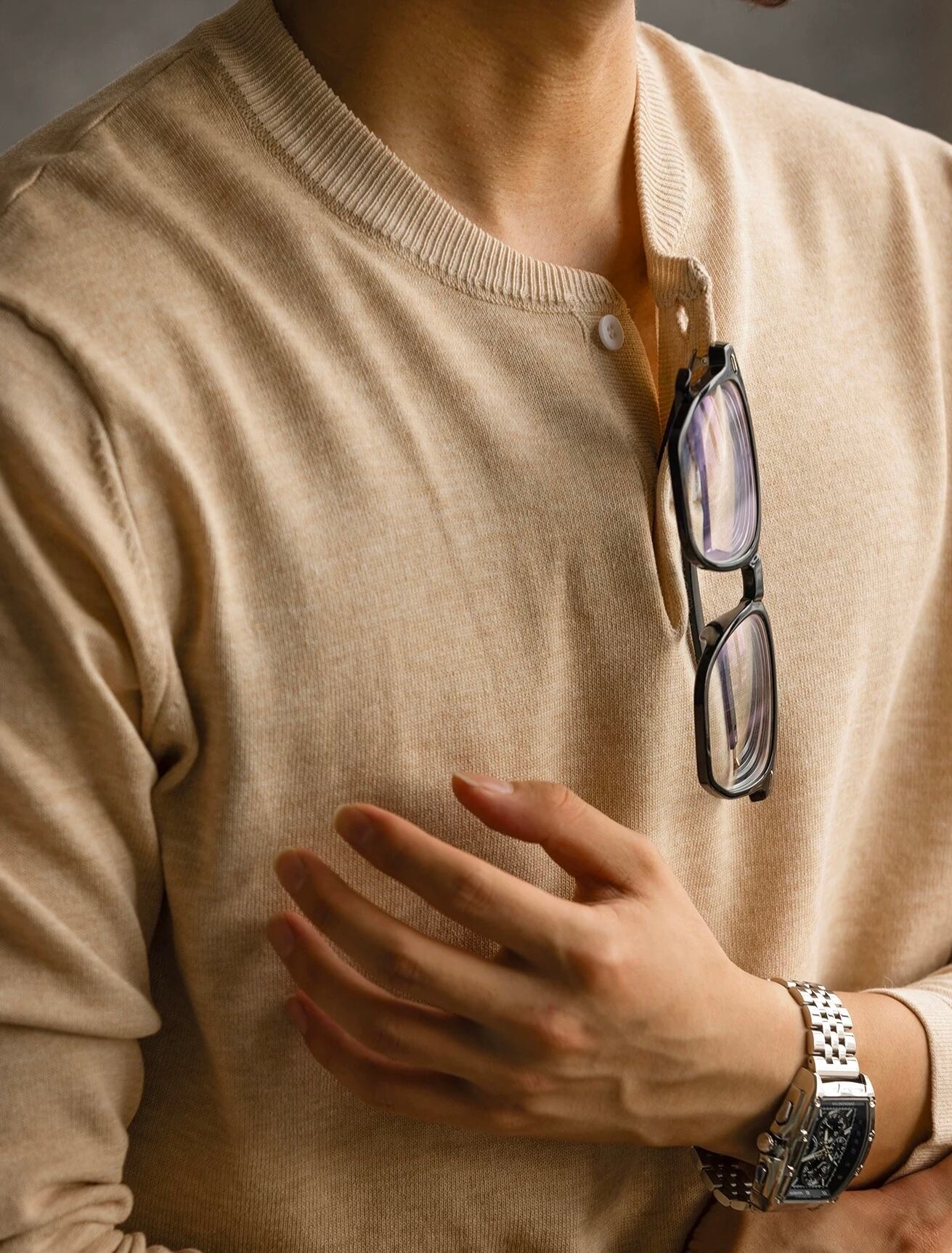 リネン混ヘンリーネックセーター【3色展開】