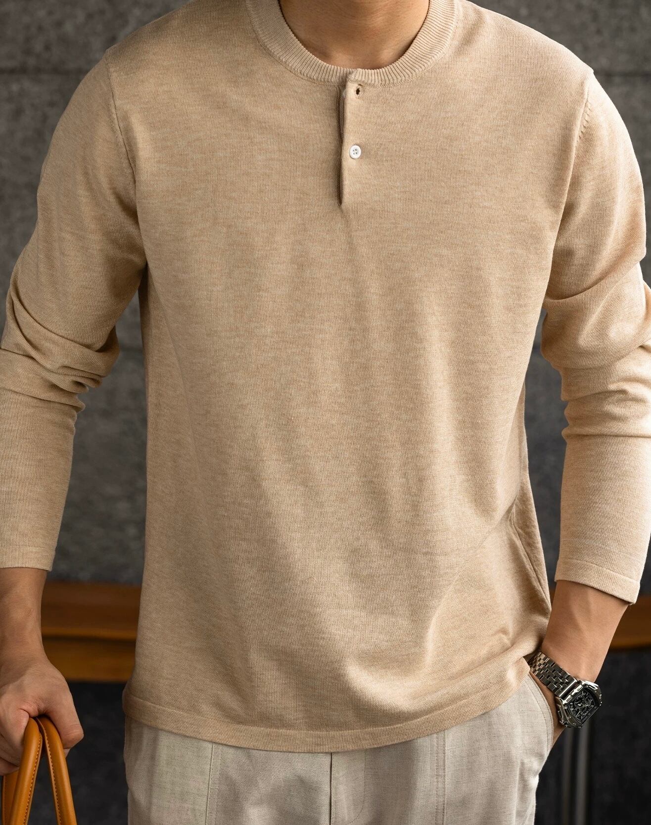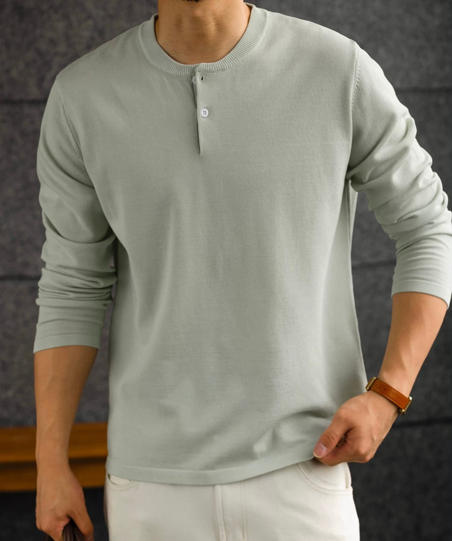 ヘンリーネックセーターは、ナチュラルな風合いが特徴のアイテムです!