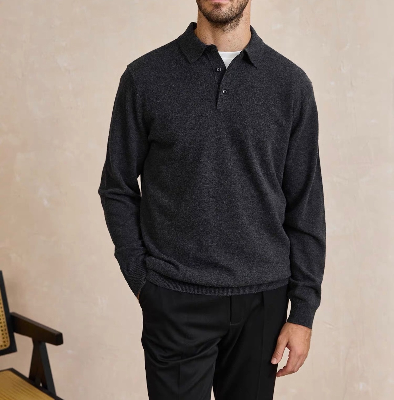 贅沢な質感のウールカシミヤポロです!温かな素材感が心地よく、ビジネスシーンからカジュアルなコーディネートまで幅広く活躍します。洗練されたシルエットが魅力で、一枚で着ても重ね着をしてもスタイリッシュに決まります。季節を問わず、デイリーにお楽しみいただける一着です。