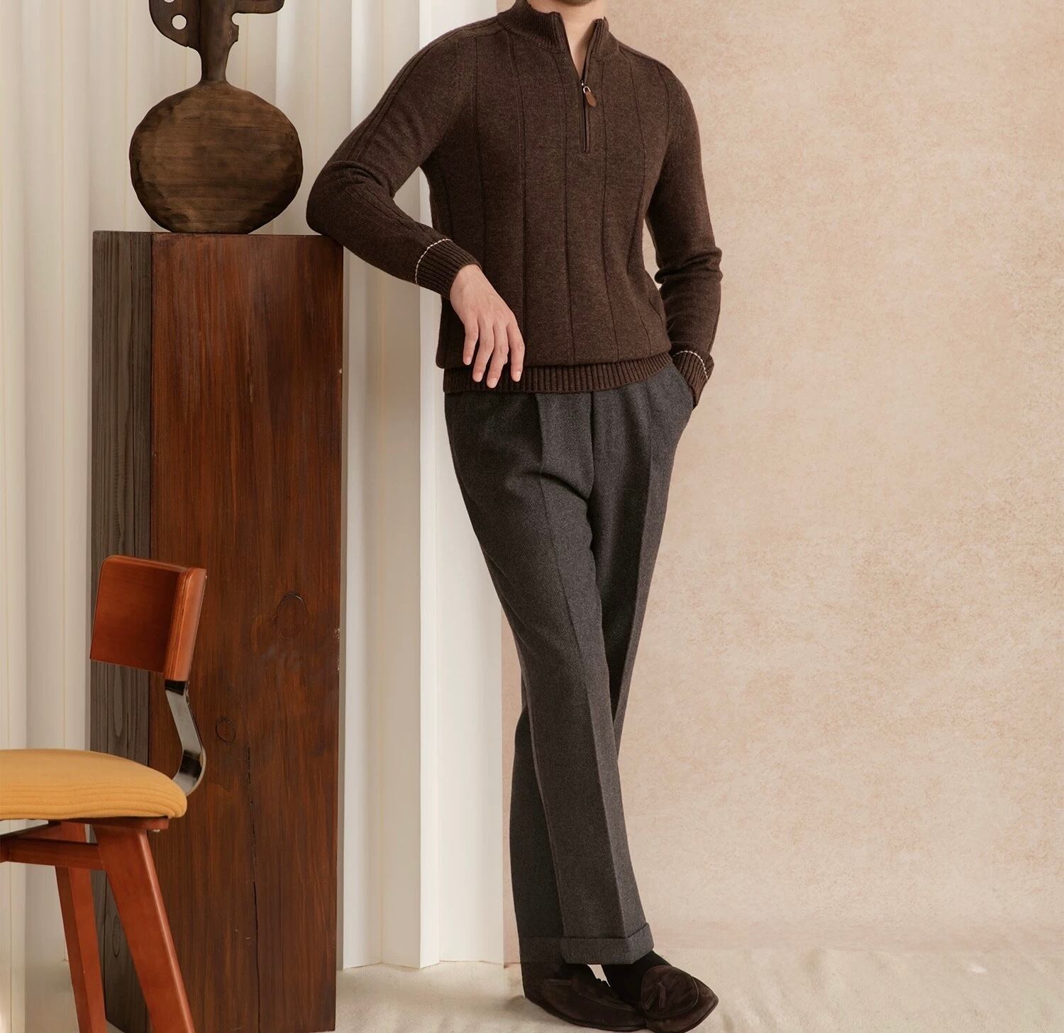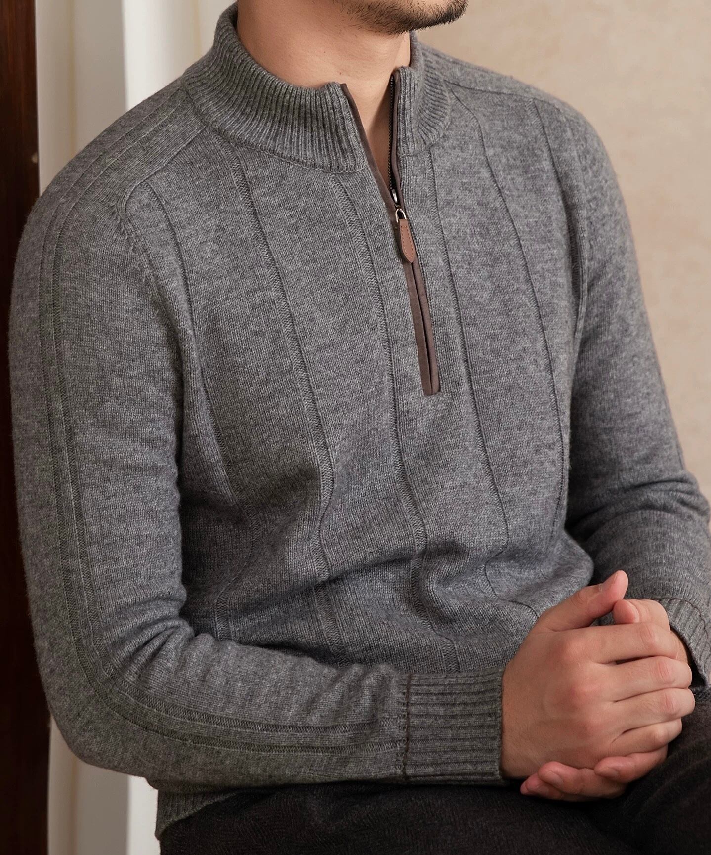 ウール混ハーフジップセーターは、抜群の暖かさとスタイリッシュなデザインが特徴的なアイテムです。
