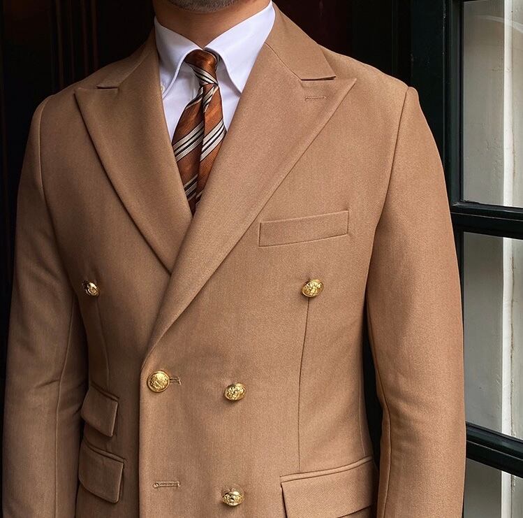 ダブルボタンデザインがクラシックな印象を与え、より上品な装いを演出します。