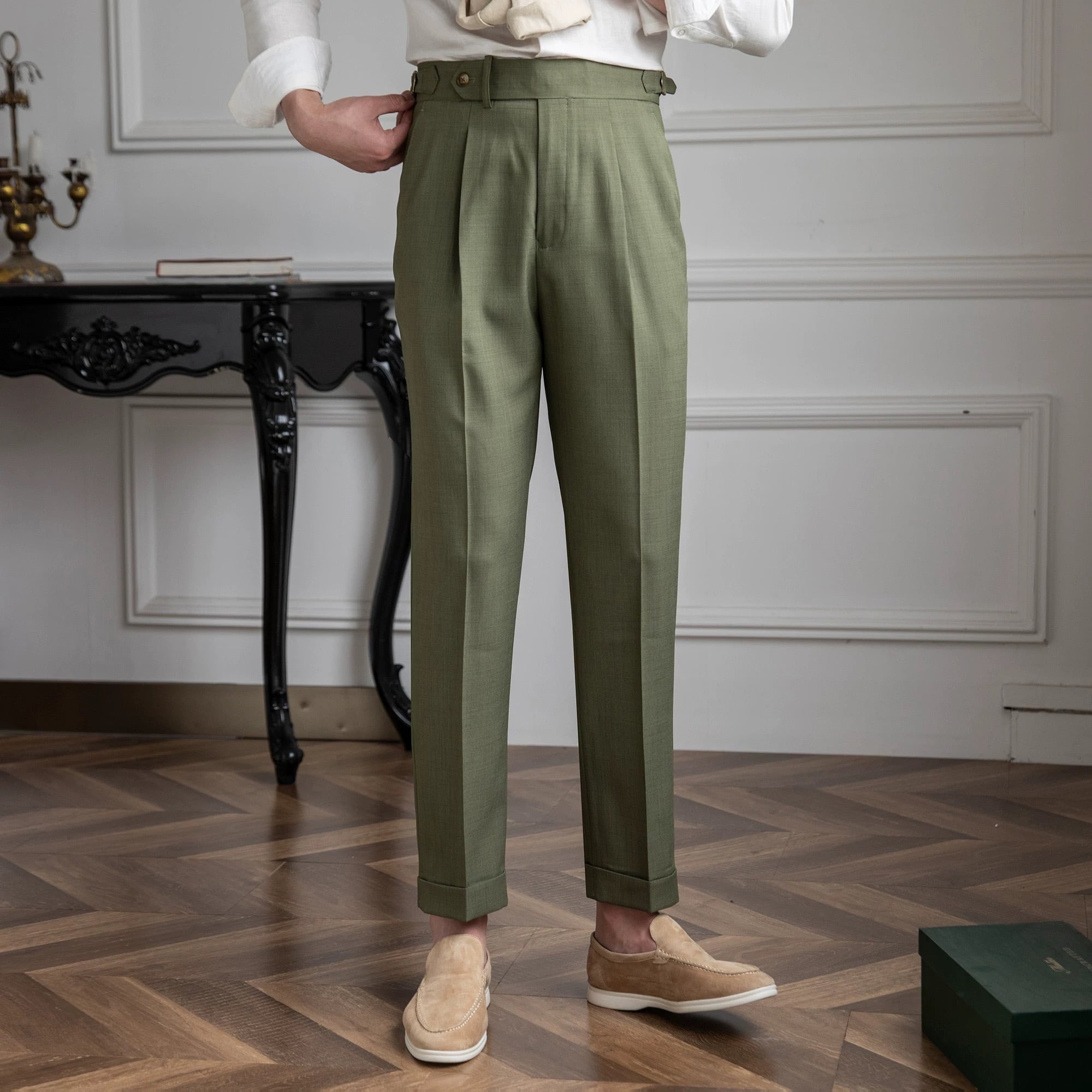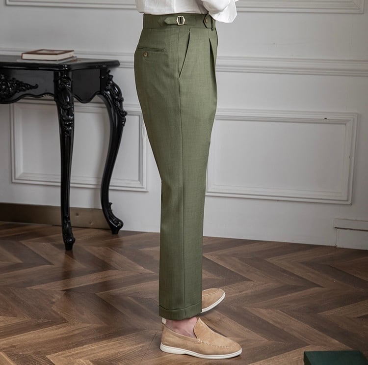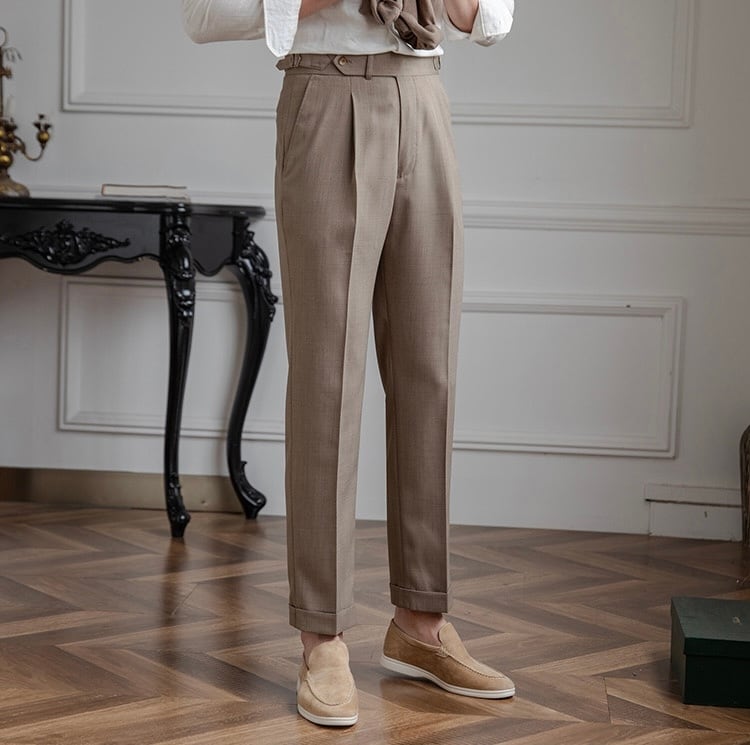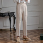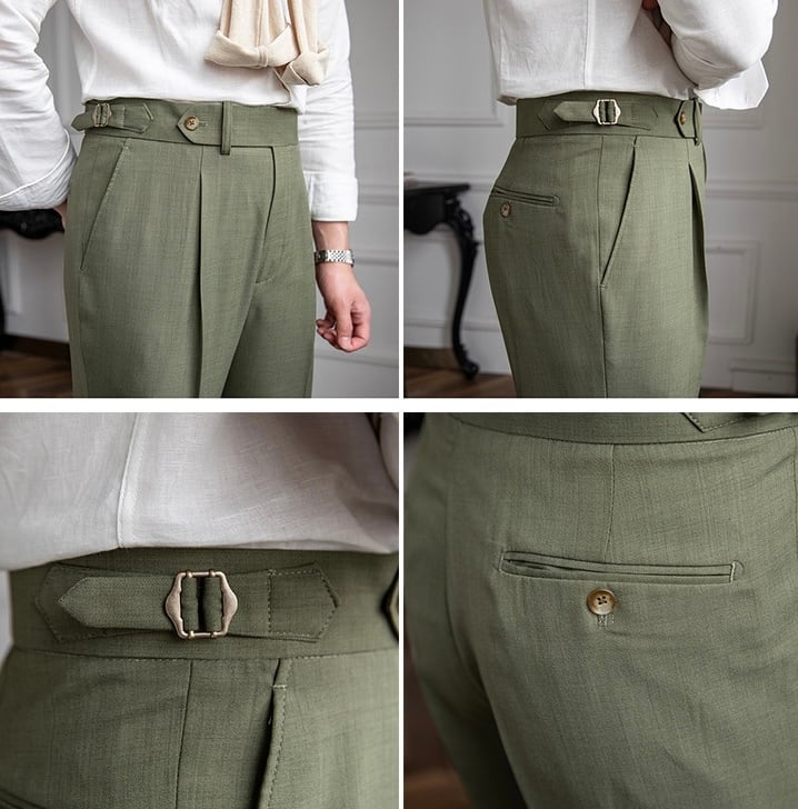 シンプルで洗練されたデザインが特徴のアイテムです。ベルトが不要なので、ウエスト周りがすっきりとしていてスタイリッシュな印象を与えます。股上が深めに設計されているので、着心地も抜群です。
