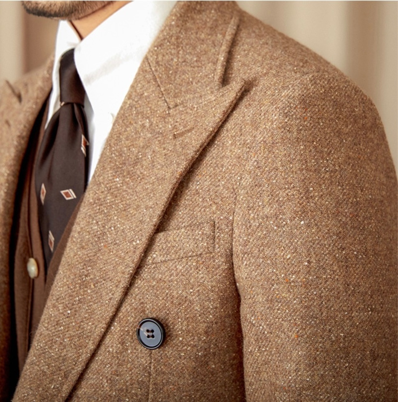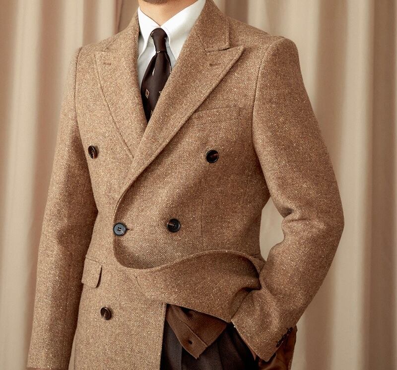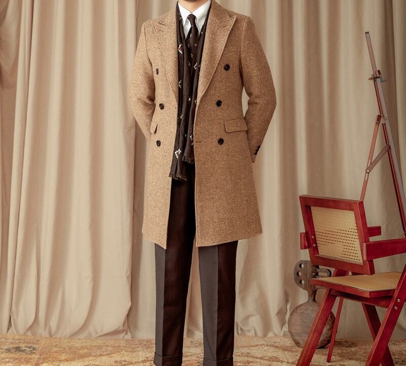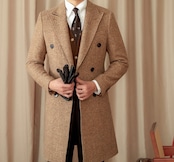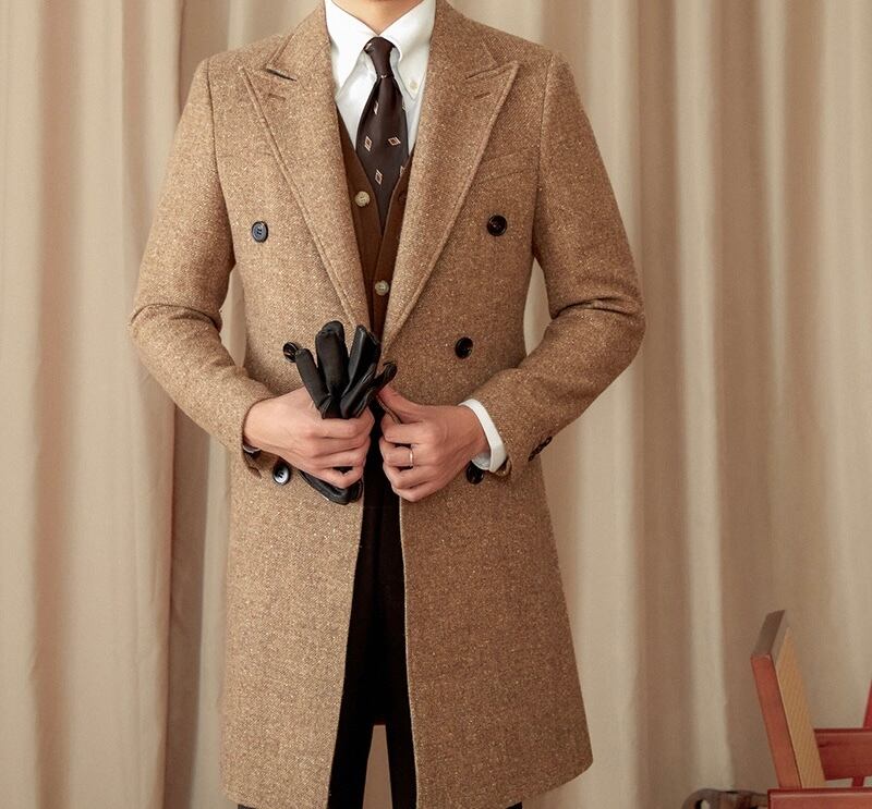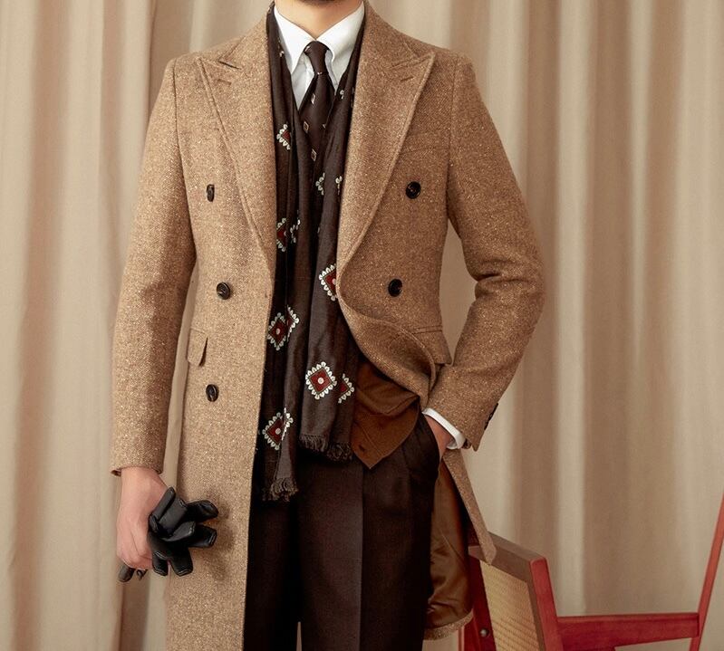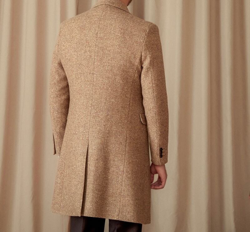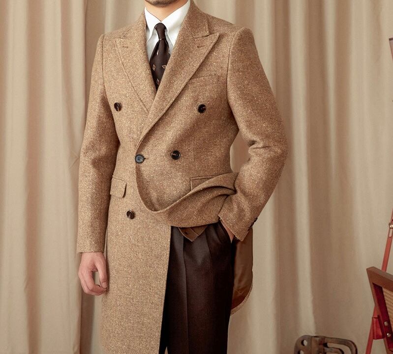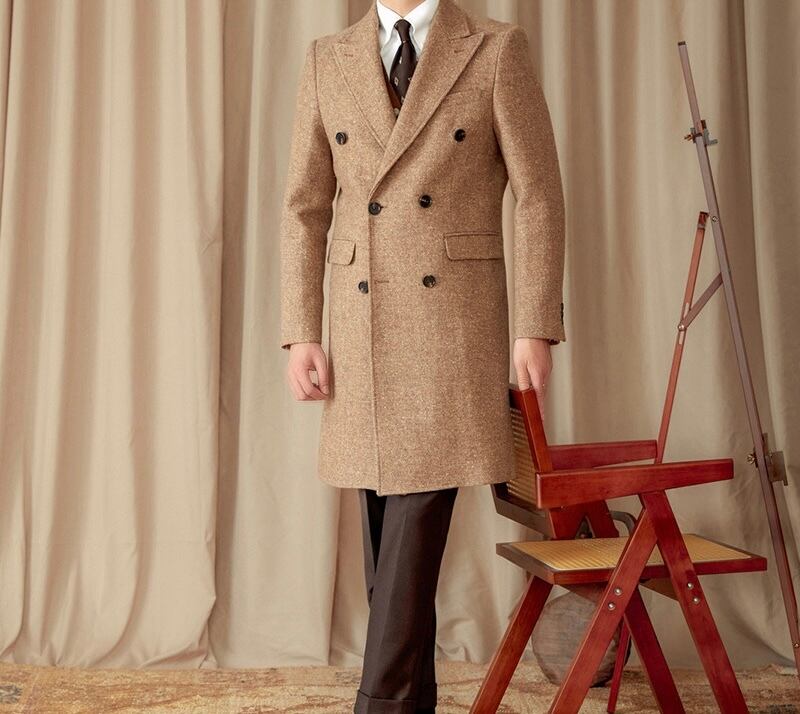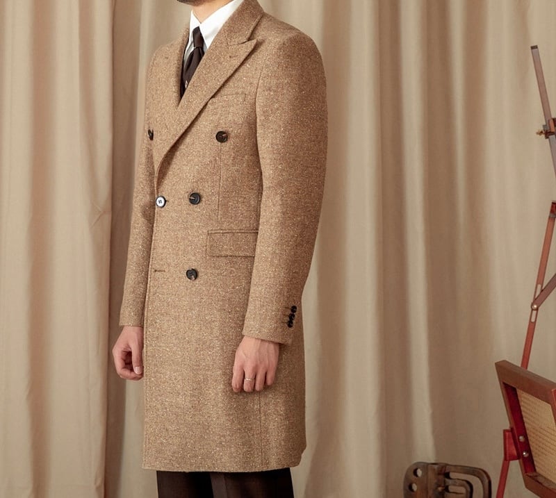 高級感あふれるウールとマルベリーシルクを使用したピークドラペルチェスターコート!