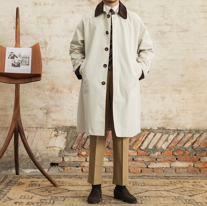 コーデュロイ素材を使用したヴィンテージトレンチコートは、クラシカルなデザインが特長で、洗練された印象を与えます。暖かな触感と優れた保温性を兼ね備え、秋冬のコーディネートにぴったりな一着です。ビジネスシーンからカジュアルなお出かけまで、多様なシーンで活躍するスタイリッシュなアイテムとなっています!